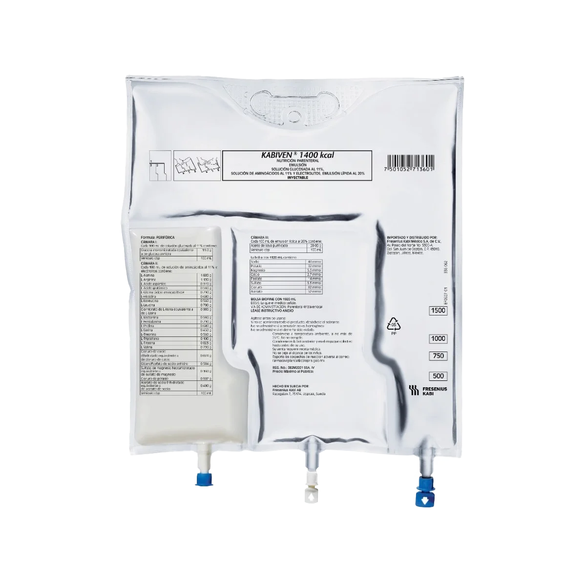 Solución glucosada93 al 11%, solución de aminoácidos al 11% y electrolitos, emulsión lípida al 20%.
